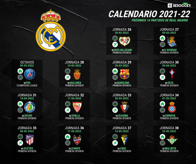 В 24-й раз и в четвертом сезоне подряд «Реал Мадрид» будет играть в понедельник. Кроме вышеупомянутого матча, в апреле 2019 года «сливочные» играли на «Бутарке» с «Леганесом», а в 2020 году после карантина отправились в Гранаду в рамках предпоследнего тура чемпионата Испании, который они выиграли через три дня во встрече с «Вильярреалом».