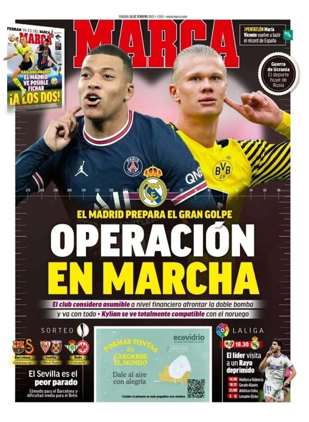 По информации Marca, цель «Мадрида» приобрести в следующем сезоне и Мбаппе, и Холанда. Королевский клуб хочет соединить этим летом двух лучших нападающих планеты, и это событие совпадет с финальным отрезком работ на «Сантьяго Бернабеу». Это будет удар по остальным клубам, благодаря которому «Мадрид» вернется на футбольный Олимп с точки зрения влияния. В спортивном плане, очевидно, клуб также ожидает впечатляющий качественный скачок.