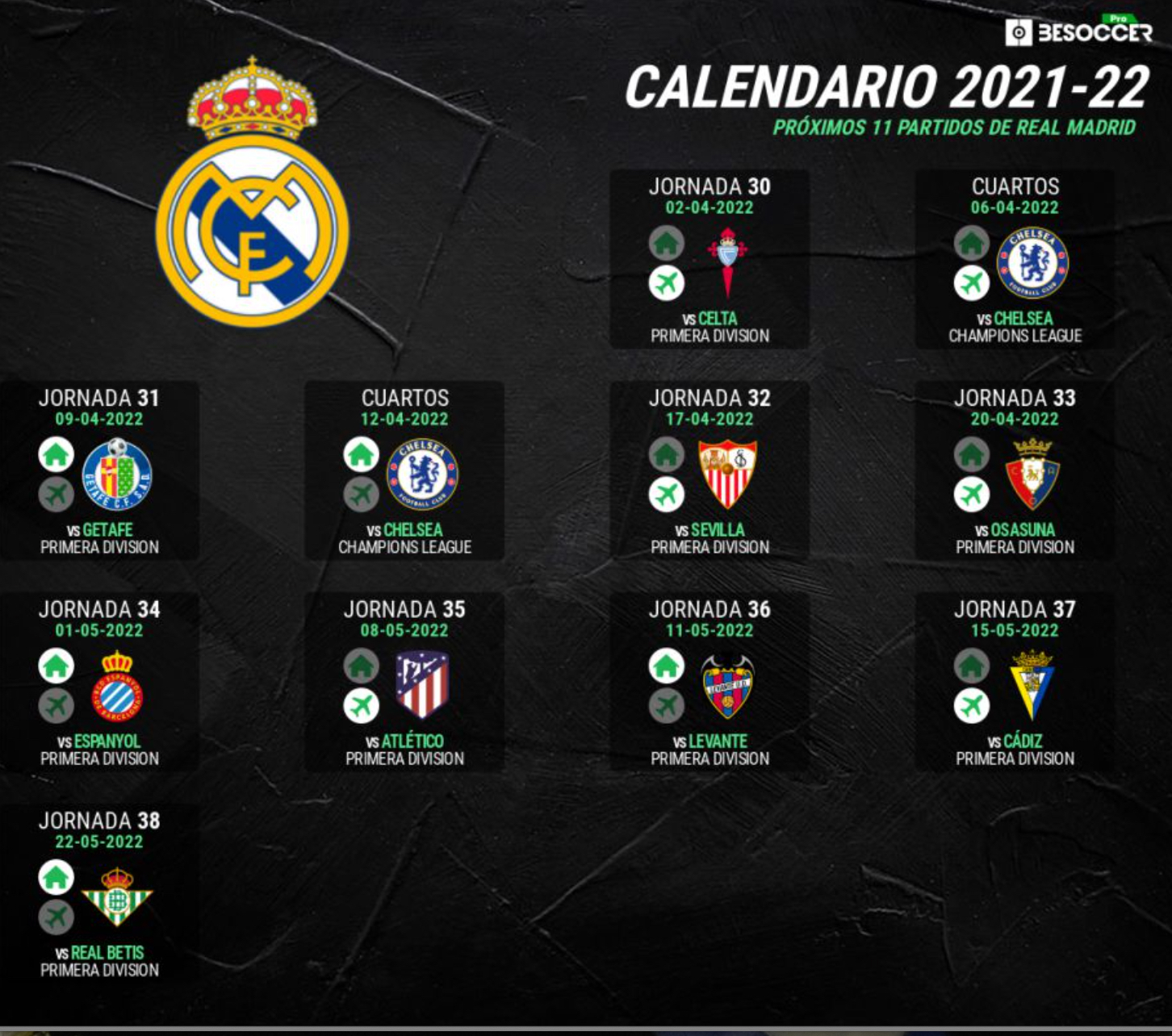 Перед бурей наступает затишье. Именно в такой ситуации оказался «Реал Мадрид» после неудачи в Класико. Обычно перерывы на матчи сборных – это вирус УЕФА, который так сильно поражает большие команды. Однако в данном случае Королевский клуб может использовать эту паузу как бальзам для заживления ран и уже с полностью заряженными батареями встретить землетрясение, которое готовит ему календарь. После возвращения игроков национальных сборных, которые на этой неделе отправились защищать цвета своих стран, команду Анчелотти ждет 15 дней настоящего безумия: «Сельта» (суббота, 2 апреля) и «Челси» (среда, 6 апреля) в Виго и Лондоне; «Хетафе (суббота, 9 апреля) и ответный матч Лиги Чемпионов против «синих» (вторник, 12 апреля) на «Бернабеу»; и, наконец, визит к «Севилье» 17 апреля, где «сливочные» могут сделать ключевой шаг в борьбе за Ла Лигу.