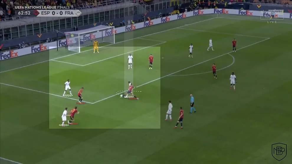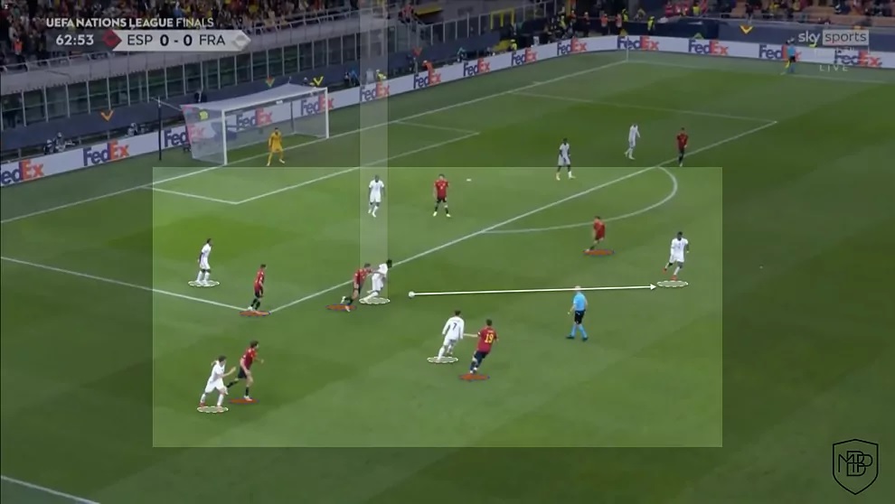 При более детальном анализе, можно отметить большие тактические способности Чуамени. Француз выделяется своим когнитивным интеллектом как в атаке, так и в обороне.
