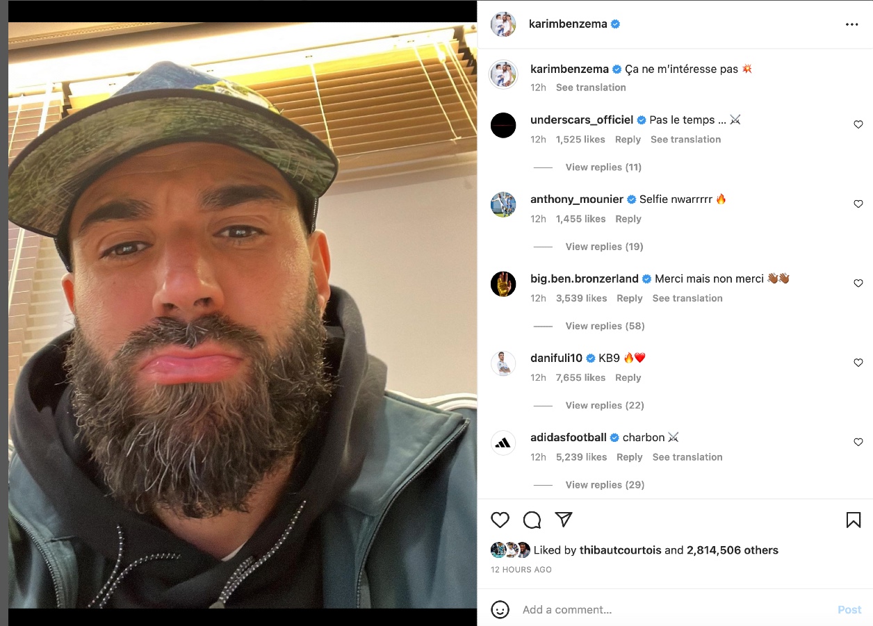 Хотя Карим уже восстановился и всё ещё числится в заявке сборной Франции на Мундиале, тренерский штаб сборной не рассматривает возможность его возвращения. Во время пресс-конференции после полуфинального матча с Марокко Дидье Дешама в очередной раз спросили, вернется ли в сборную Карим, на что французский специалист раздраженно ответил: «Следующий вопрос».
