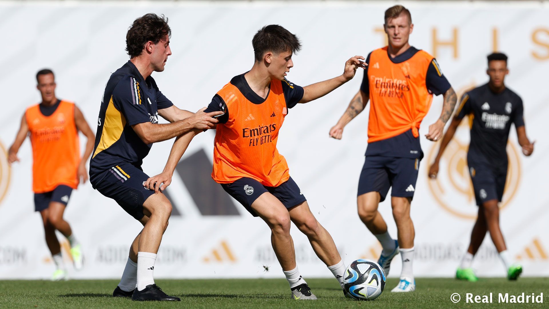 Из первой команды к работе приступили: Андрей Лунин, Хесус Вальехо, Альваро Одриосола, Лукас Васкес, Ферлан Менди, Тони Кроос, Федерико Вальверде, Дани Себальос, а также новички Джуд Беллингем, Браим Диас и Фран Гарсия, который сократил свой отпуск.