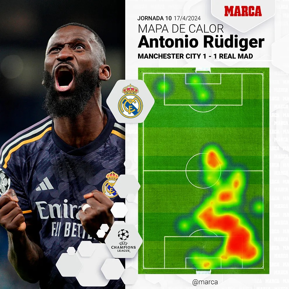 Рюдигер приобрел такой авторитет в этом сезоне. Если то, что он сделал в прошлой кампании против Холанда на «Бернабеу», вызывало вопрос, была ли это просто мимолетная победа, то в четвертьфинальных матчах против «Манчестер Сити» немец доказал, что он – центральный защитник Лиги Чемпионов.