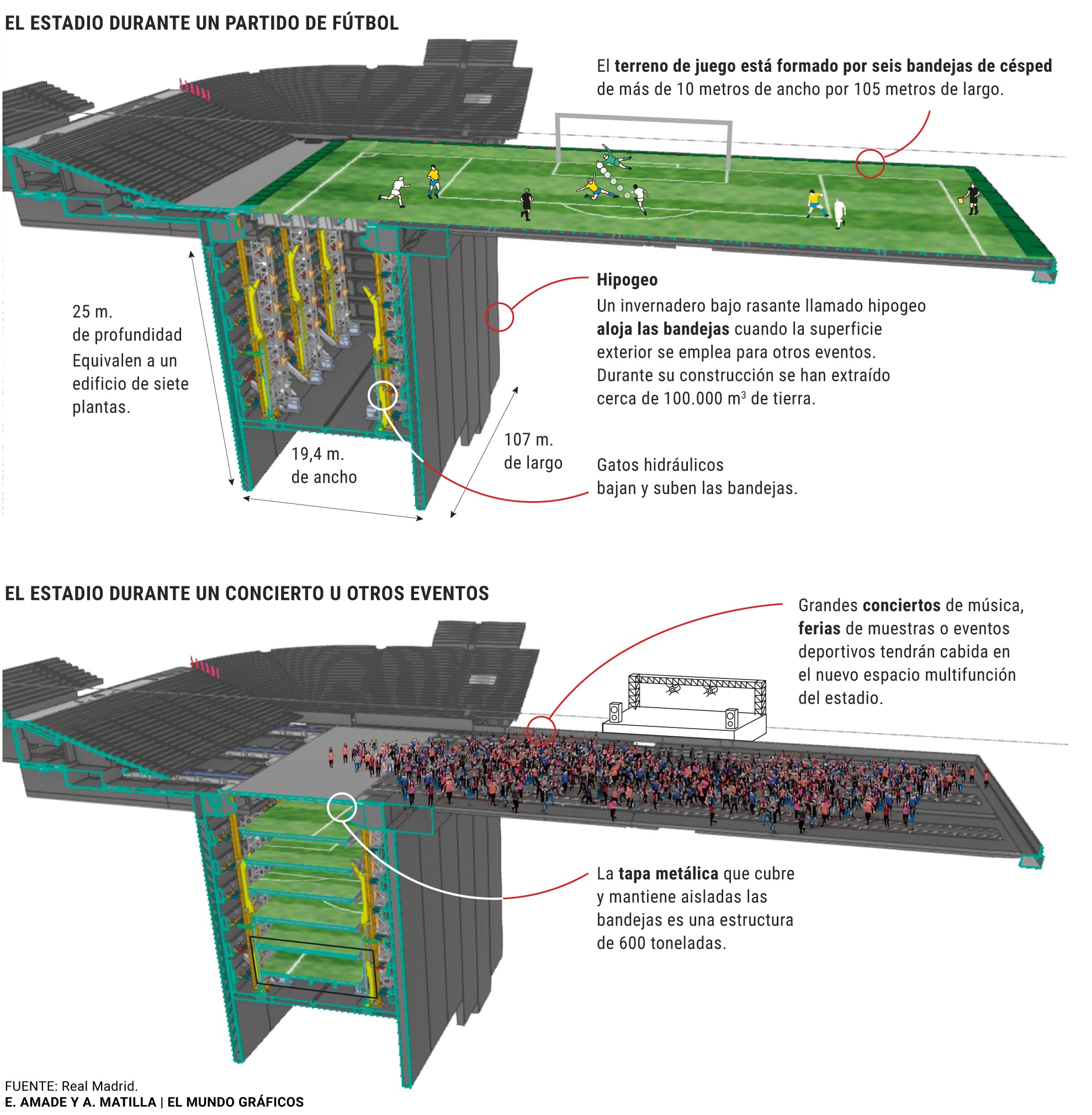 Механизм Сенера – самая прибыльная инновация стадиона. Затраты на Hipogeo – около 4,5 млн евро, если учитывать только инженерные работы, – будут амортизированы к концу года, поскольку, согласно данным, именно это решение позволит увеличить годовой доход от «Сантьяго Бернабеу» почти на 200 млн евро по сравнению с запланированным. С момента внедрения система позволила стадиону принять таких звезд, как Тейлор Свифт, на концерт которой было продано 72400 билетов, или Мануэль Карраско, и согласовать более десятка шоу до конца года.