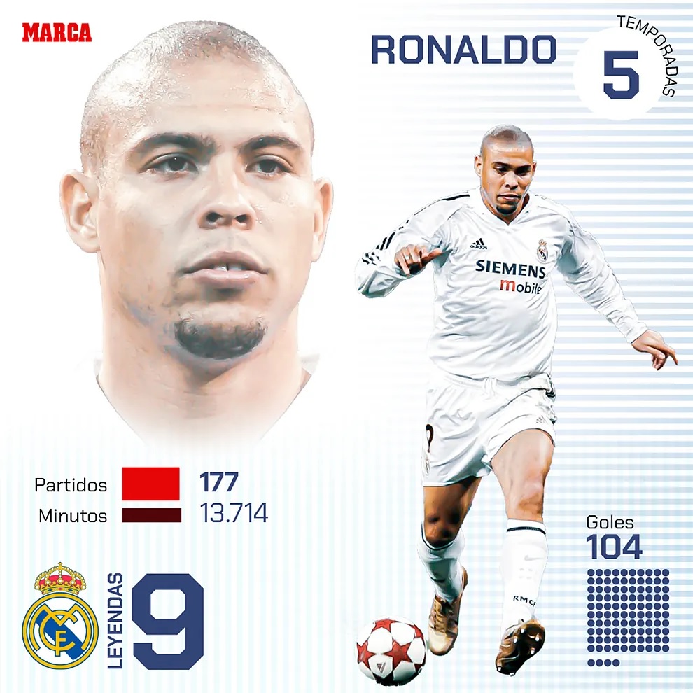 Возникает вопрос: что было бы, если бы он перешел в «Мадрид» раньше? Причем здоровым. Потому что Рональдо, носивший футболку «сливочных» с 2002 по 2007 год (104 гола), был игроком, которому травмы нанесли жесткий удар. И все же он был уникален. Потому что он был особенным футболистом. Это объясняется тем, что в день его дебюта за «Мадрид», против «Алавеса» на «Бернабеу», первые два его удара пришлись в створ ворот. Он один из тех феноменов, которые стали таковыми, так и не выиграв Лигу Чемпионов.