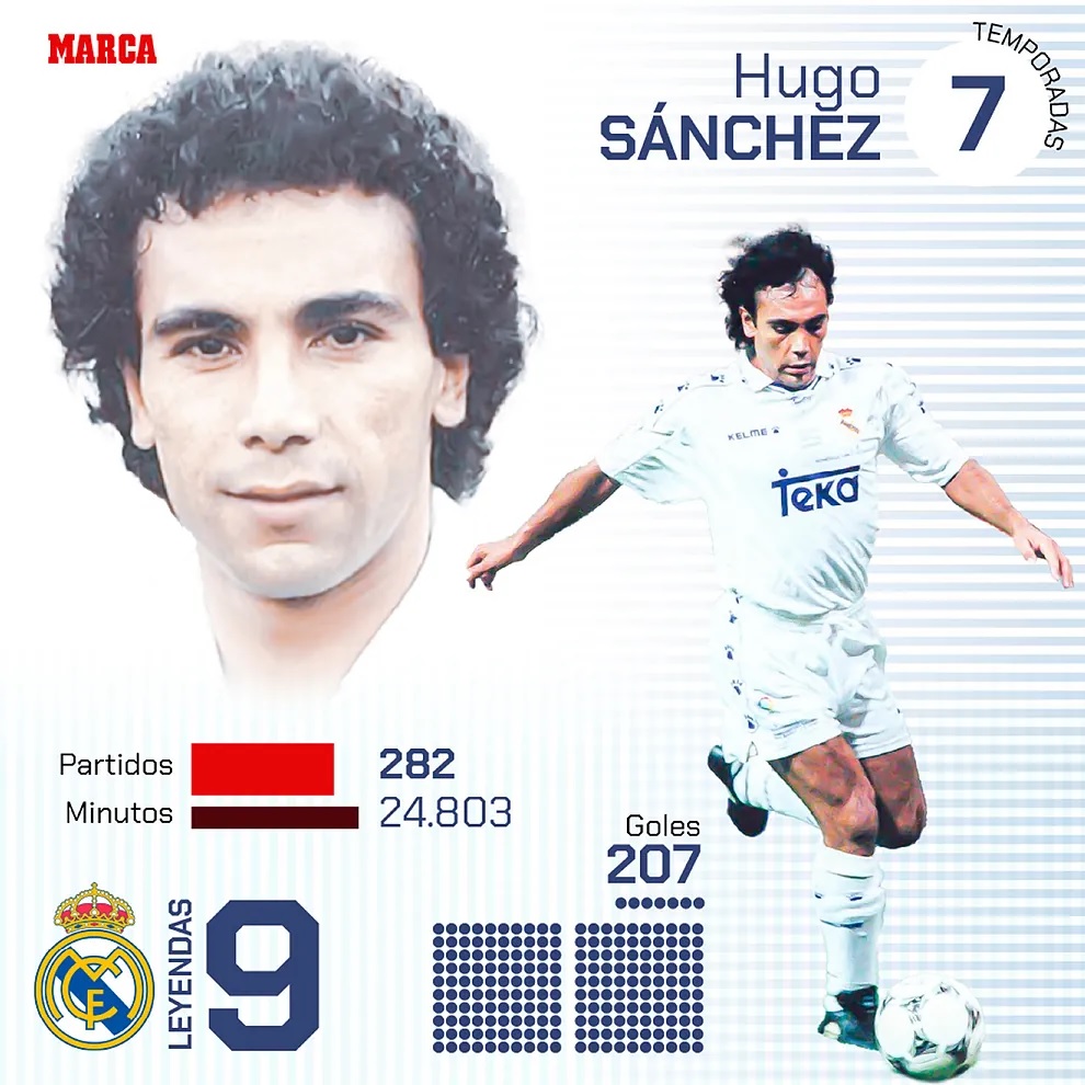 Возможно, самый опасный финишер в истории «Мадрида». Из 208 его голов за семь сезонов можно пересчитать по пальцам те, для которых потребовалось более двух касаний, чтобы отправить мяч в сетку. Он прибыл летом 1985 года, когда Рамон Мендоса вошел в президентский кабинет с мексиканцем, Гордильо и Македой, чтобы изменить историю. Уго Санчес стал бомбардиром золотой эры «Пятерки Стервятника». Он взял себе «9»-ый номер, который принадлежал Сантильяне. Однако в прощальном матче кантабрийца Уго был «8»-ым, а Сантильяна – «9»-ым. Ла Лига была его садом, но Кубок Европы от него ускользнул.