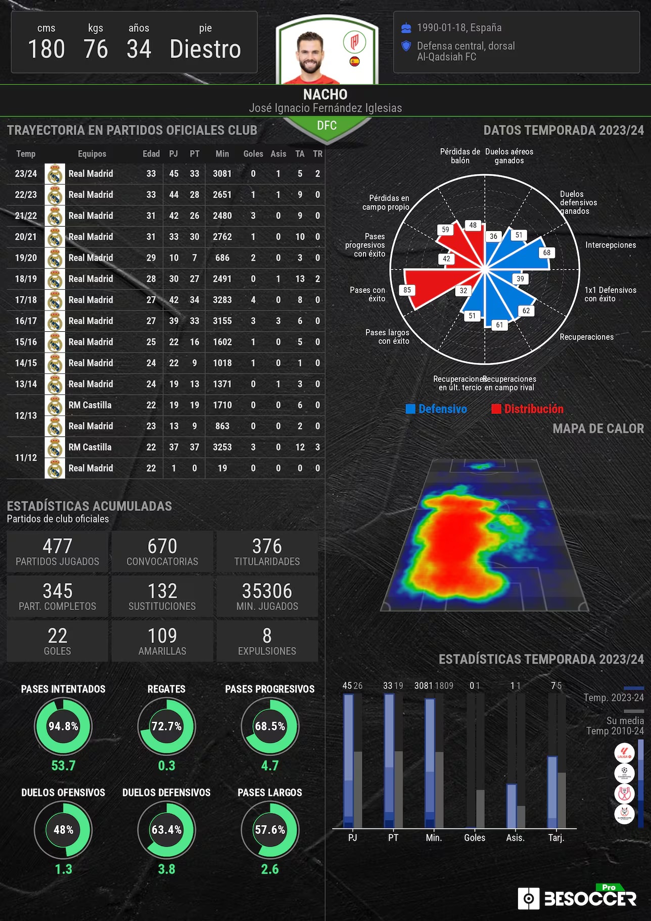 Начо покидает «Мадрид», став капитаном первой команды в своем последнем сезоне, имея на своем счету 26 титулов и 364 сыгранных матча. Его послужной список достоин похвалы: шесть трофеев Лиги Чемпионов (один из немногих игроков, которые могут похвастаться тем, что выиграли столько), четыре трофея Ла Лиги, два Кубка Короля, пять Клубных Чемпионатов Мира, четыре Суперкубка Европы и пять Суперкубков Испании.