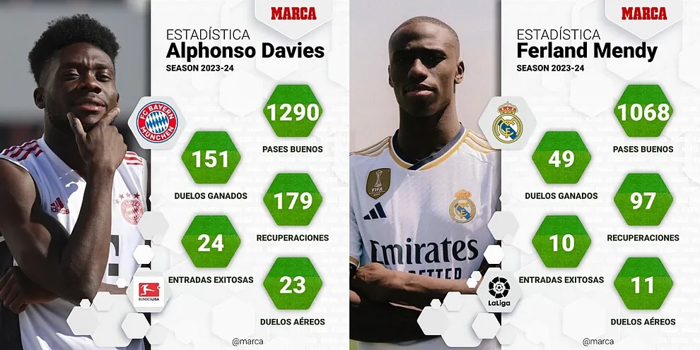 В сезоне 2023/24 в центре внимания оказались два ключевых левых латераля: Альфонсо Дэвис и Ферлан Менди. Учитывая потенциальный интерес «Мадрида» к Дэвису, а также тот факт, что оба игрока находятся в стадии переговоров о продлении контрактов со своими клубами, необходимо сравнить выступления Менди и Дэвиса на поле. Это поможет понять последствия и возможные стратегические решения для Королевского клуба.