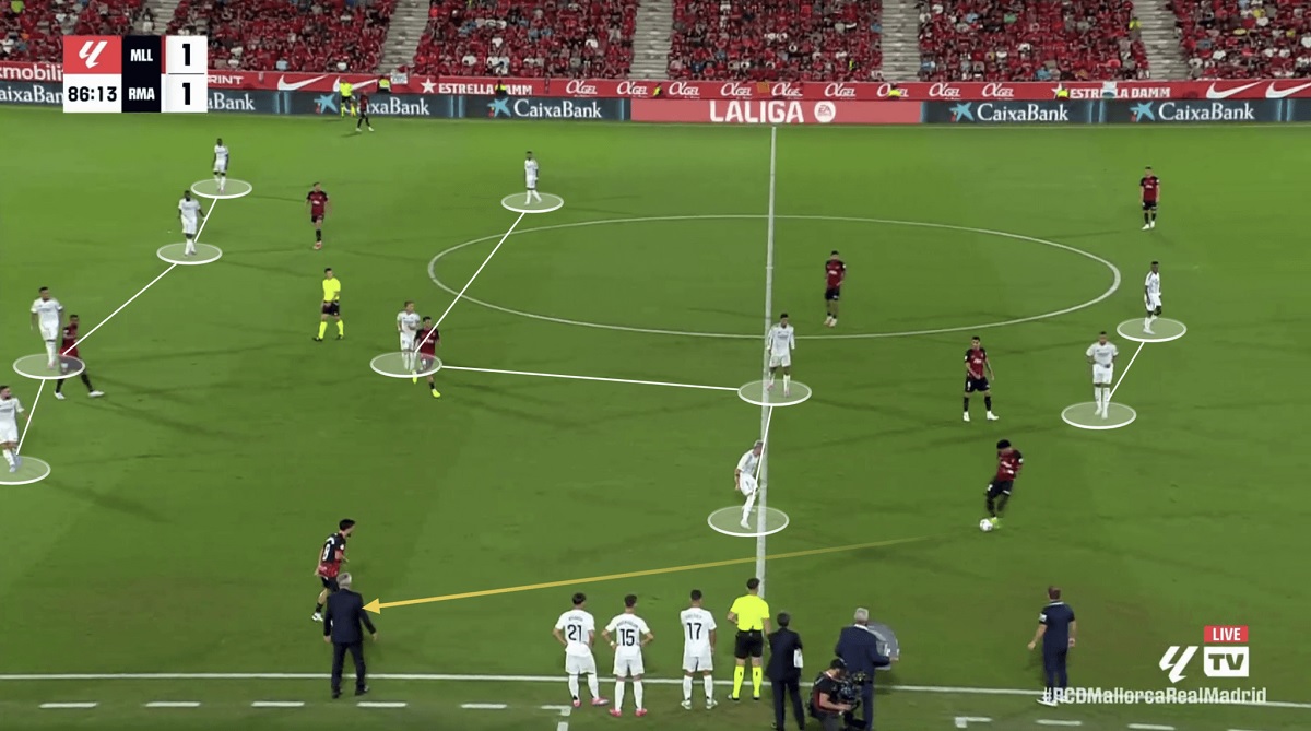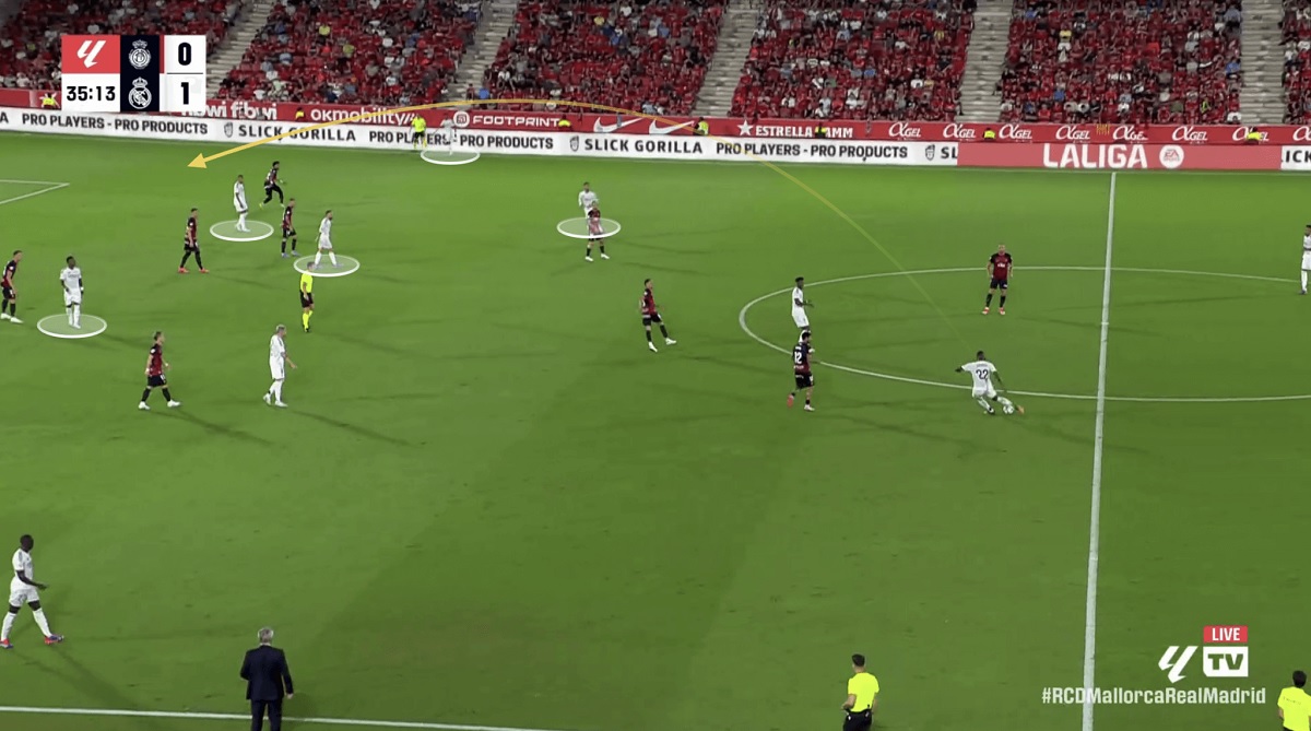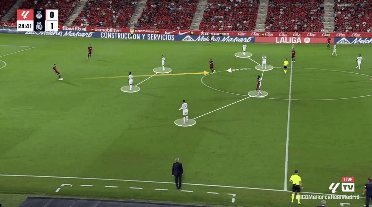 Однако за такую свободу пришлось расплачиваться в матче с «Мальоркой»: полузащита из трех человек часто не справлялась с вертикальностью и энергичностью команды Хагобы Аррасате, которая смогла вернуться в игру, забив один гол. Беллингем и Вальверде так высоко поднимались, что им приходилось преодолевать большие расстояния, когда они вынуждены были возвращаться в оборону.