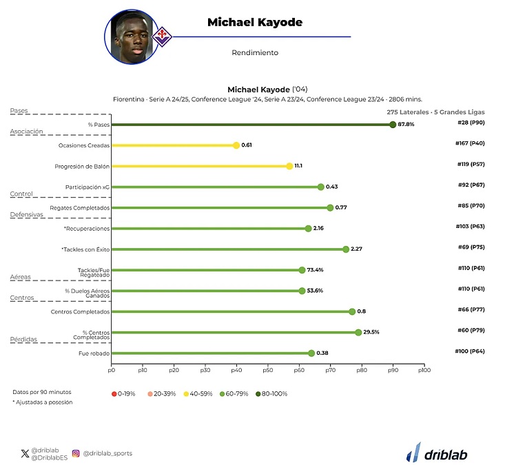 В среднем Кайоде совершает 5,73 действий возле ворот соперника за игру, что говорит о его вовлеченности в атаку. У него исключительная статистика по проценту выполненных навесов и передач.