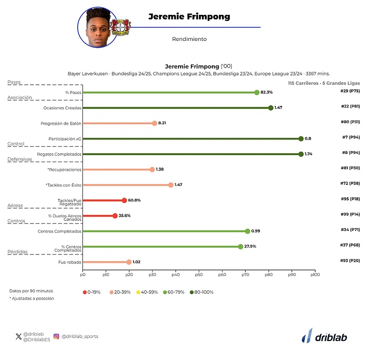 Фримпонг много играл на позиции латераля, но после прихода в «Байер» Хаби Алонсо, практически перестал это делать. Его контракт истекает в 2028 году, а его рыночная стоимость составляет 63 млн, но «Байер» запросит гораздо больше, поскольку Фримпонг важен для команды. В декабре ему исполнится 24 года.