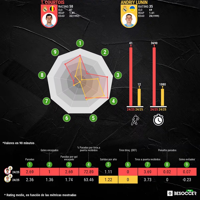 «Райо», первые из этой тройки национальных соперников, нанесли 20 ударов по воротам Лунина, из которых шесть – в створ.