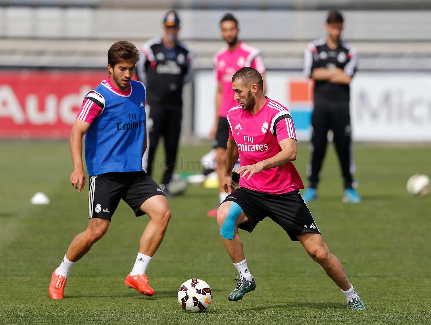 Мадридский «Реал» продолжает подготовку к матчу с «Валенсией», который состоится в субботу, 9 мая, в 21:00 по московскому времени. Сегодня, под руководством Карло Анчелотти, на поле занималась вся команда, кроме Луки Модрича, продолжающего восстанавливаться после травмы, и Сами Хедиры, который работал в спортзале. Карим Бензема, не летавший с командой в Турин, провел тренировку вместе со всеми игроками.