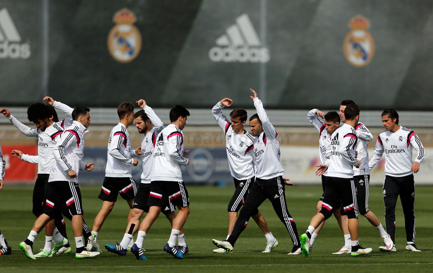 Вчера футболисты мадридского «Реала» провели на своей спортивной базе в Вальдебебас очередную тренировку без 17 игроков команды, вызванных в свои национальные сборные для участия в отборочных матчах на Чемпионат Европы-2016. Хамес Родригес, продолжающий процесс восстановления после полученной травмы, и Альваро Арбелоа занимались отдельно в тренажерном зале и на поле так и не появились.