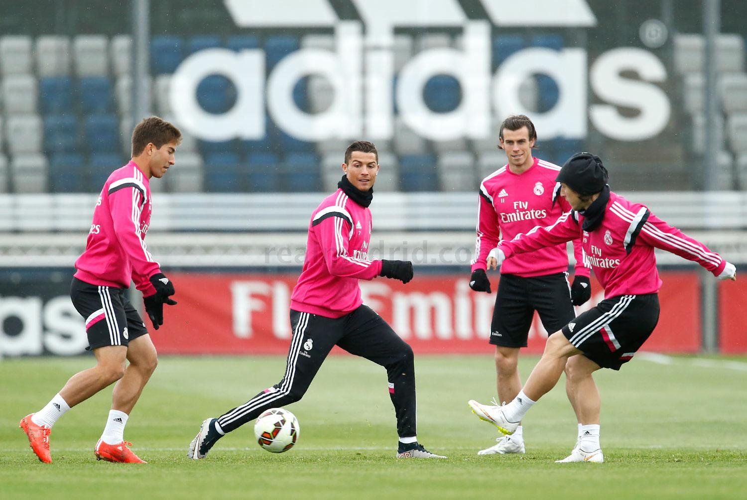 Вчера перед отъездом в Барселону команда Карло Анчелотти провела на своей спортивной базе в Вальдебебас последнюю тренировку в преддверии Эль Класико. Из-за заболевания гастроэнтеритом на поле отсутствовали Сами Хедира и Фабио Коэнтрао, так же как и Хамес Родригес, продолжающий процесс восстановления после травмы.