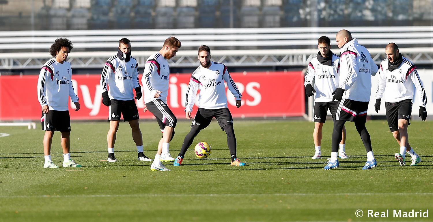 Футболисты, вышедшие в основе в недавнем матче группового этапа Лиги чемпионов против «Лудогорца», работали в тренажерном зале, в то время как Дани Карвахаль, Марсело, Серхио Рамос, Пепе, Карим Бензема, Хесе Родригес и Альваро Медран занимались на поле в Вальдебебас под руководством главного тренера: игроки провели разминочные упражнения для разогрева и укрепления мышц тела, после чего приступили к работе с мячом.