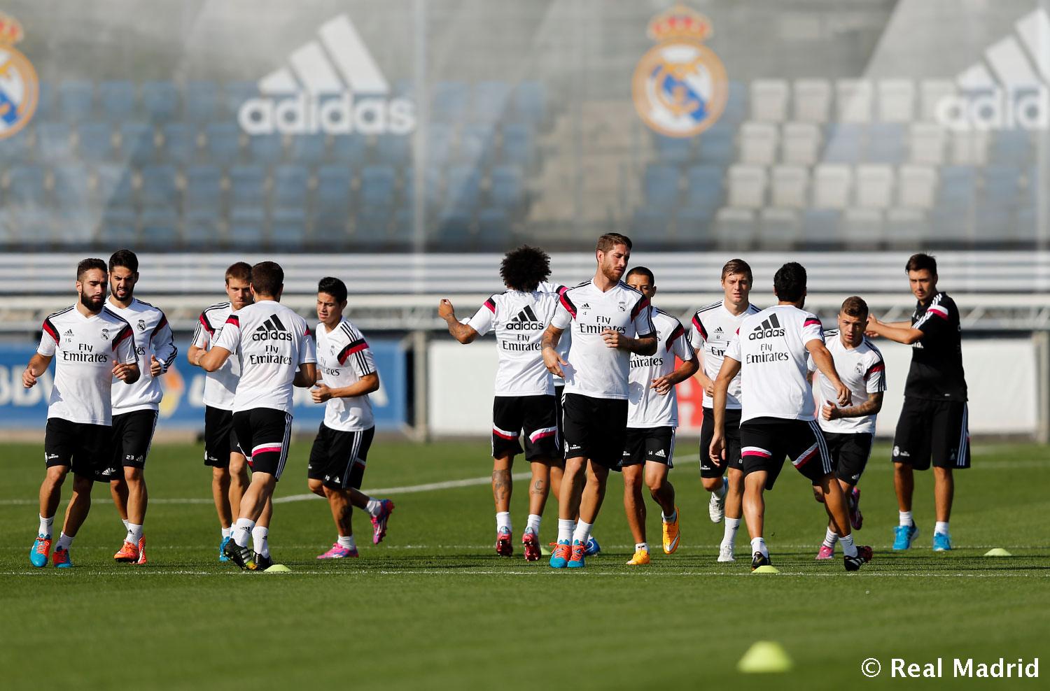 Травмированные Хесе и Сами Хедира продолжают процесс реабилитации, в то время как Криштиану Роналду появился на поле вместе с другими футболистами команды, однако занимался отдельно, упражняясь лишь в беге. Гарет Бэйл и Фабио Коэнтрао также провели тренировку отдельно от общей группы, занимаясь в тренажерном зале, а все остальные игроки находились в распоряжении главного тренера «сливочных», включая и двух игроков «Кастильи» – Альваро Медрана и Агонея Гонсалеса.