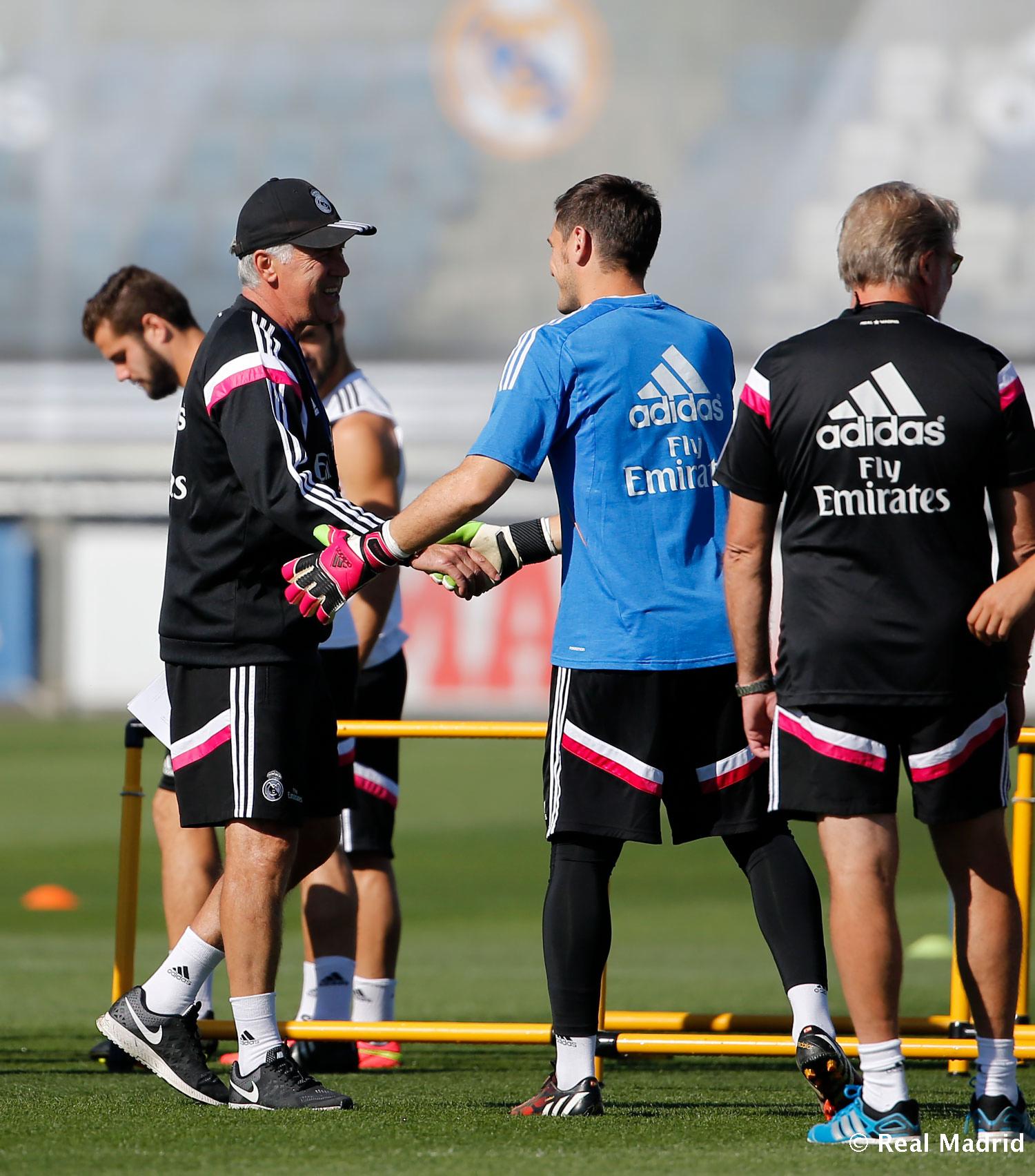 На тренировке, которая началась с поздравлений Икера Касильяса с 15-летием выступлений за «Реал», присутствовали все игроки первой команды, а также два кантерано – Якоб Санчес и Альваро Медран.