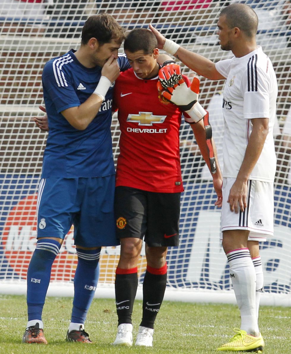 Как сообщают испанские СМИ, «Реал Мадрид» и «Манчестер Юнайтед» пришли к соглашению о годовой аренде мексиканского нападающего Хавьера «Чичарито» Эрнандеса. В прошлом году под руководством Дэвида Мойеса футболист выходил в основном на замену и в рамках Премьер-Лиги провел на поле всего 885 минут. После прихода в команду Луи Ван Гаала мексиканец также играет нечасто.