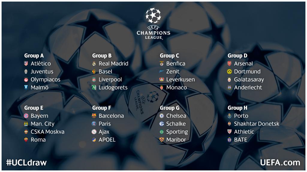 На состоявшейся сегодня в Монако жеребьевке группового этапа Лиги Чемпионов 2014/15 в соперники действующему обладателю Кубка Чемпионов мадридскому «Реалу» достались «Базель», «Ливерпуль» и «Лудогорец». Групповой этап стартует 16-17 сентября и завершится 9-10 декабря. Финал турнира пройдёт 6 июня 2015 года на Олимпийском стадионе в Берлине.