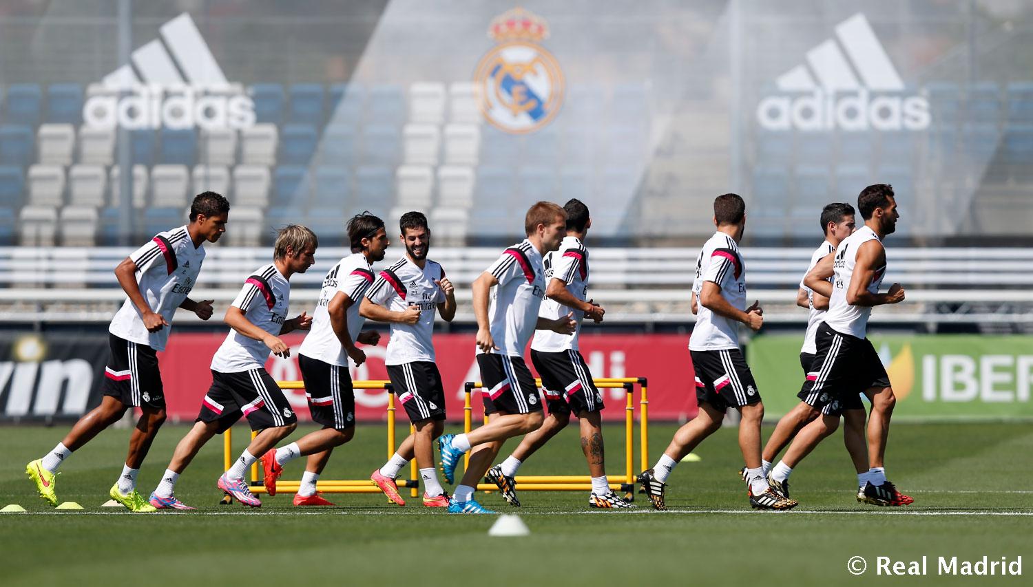 Пепе начал тренировку с бега и затем также продолжил заниматься на тренажерах. Группа вратарей в составе Икера Касильяса, Кейлора Наваса и Пачеко занималась под руководством Вильяма Векки. Остальные 9 игроков, находившиеся в распоряжении главного тренера команды Карло Анчелотти, начали тренировку с упражнений на разогрев и на укрепление мышц, после чего приступили к отработке игры в прессинг и контроля мяча на скорости. Молодой нападающий Хесе Родригес по-прежнему продолжает процесс восстановления после травмы.