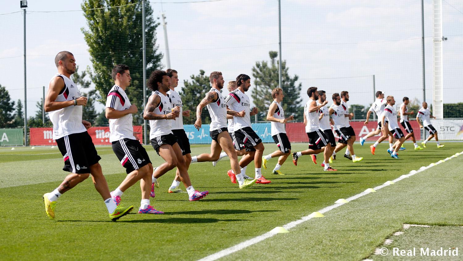 Вчера вечером на спортивной базе «Реала» в Вальдебебас прошла первая тренировка команды после возвращения из США. Кроме травмированного Хесе, в распоряжении команды находились все 22 игрока, в том числе финалисты Чемпионата Мира в Бразилии Тони Кроос и Сами Хедира, а также Анхель Ди Мария, который в ближайшее время может перейти во французский «ПСЖ».