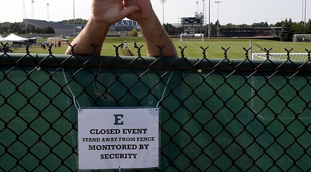 Вчера во время утренней тренировки Криштиану Роналду на стадионе Университета Восточного Мичигана произошел необычный курьез: служба безопасности университета настоятельно попросила всех присутствующих болельщиков покинуть территорию стадиона, а также запретила им фотографировать игрока. Собравшиеся люди неохотно исполняли эти требования и не желали расходиться, в связи с чем службе безопасности пришлось обратиться в полицию.