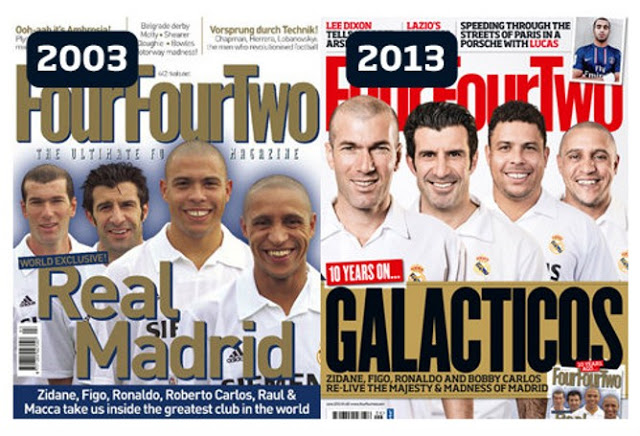 Прошло десять лет с выхода самой звездной обложки журнала FourFourTwo. В честь юбилея, журнал вновь объединил знаменитую четверку «галактикос»: Рональдо, Луиша Фигу, Роберто Карлоса и Зинедина Зидана для того, чтобы вспомнить былые времена.