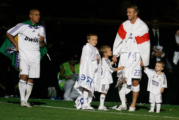 Роберто Карлос и Дэвид Бэкхем с сыновьями.